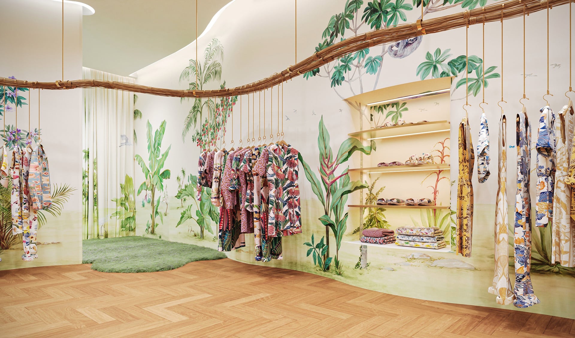 El local ocupa 105 m² diseñados para transportarte directo a Río. La tienda fusiona elementos culturales brasileños con toques locales argentinos, creando una experiencia de compra envolvente que va más allá de lo comercial.