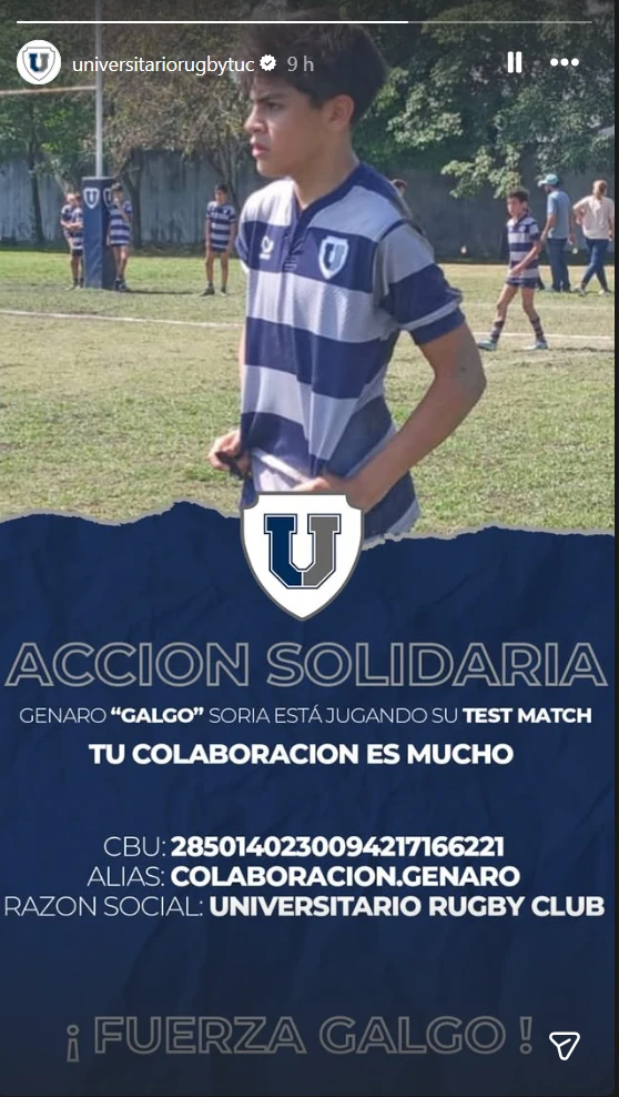 Genaro Soria, un joven tucumano de 16 años y jugador de Universitario, atraviesa un delicado momento de salud y desde el Club Universitario pusieron en marcha una red de contención para apoyarlo. Bajo el lema “Unidos por Genaro”, se lanzó una colecta solidaria para colaborar con los gastos que demanda su internación.